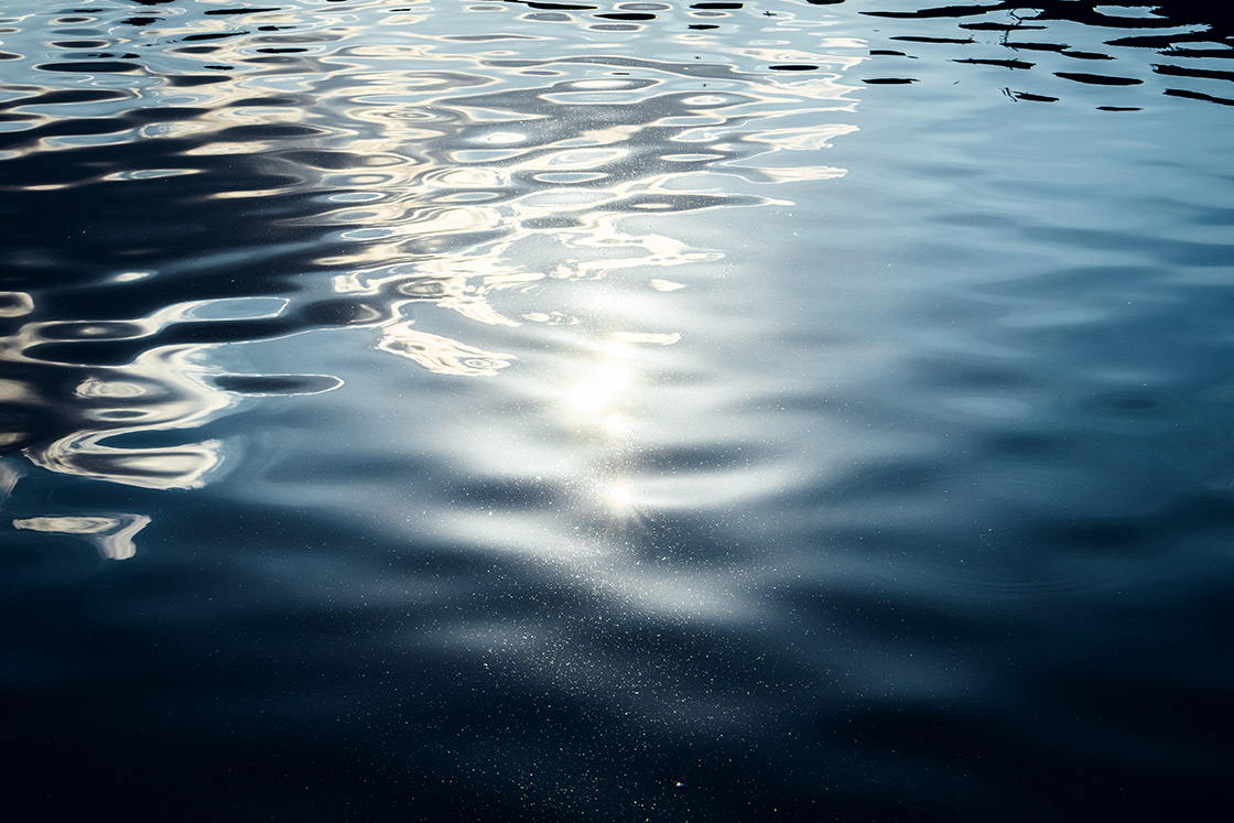 「水面ならではの滑らかな表情がそのまま写し出されていて、水面をよく撮る私としては、そのことにとても感激しました。水面に浮かぶ光を反射した小さな塵一つひとつのディテールまで、繊細かつきれいに写し出されていることにも驚きです。余計なものを除くことで、水面そのものの魅力をより伝えられると思い、レンズはズームレンズ RF-S18-45mm F4.5-6.3 IS STMを使用し焦点距離を45mmに合わせ、水面だけを切り取るようにしました」。