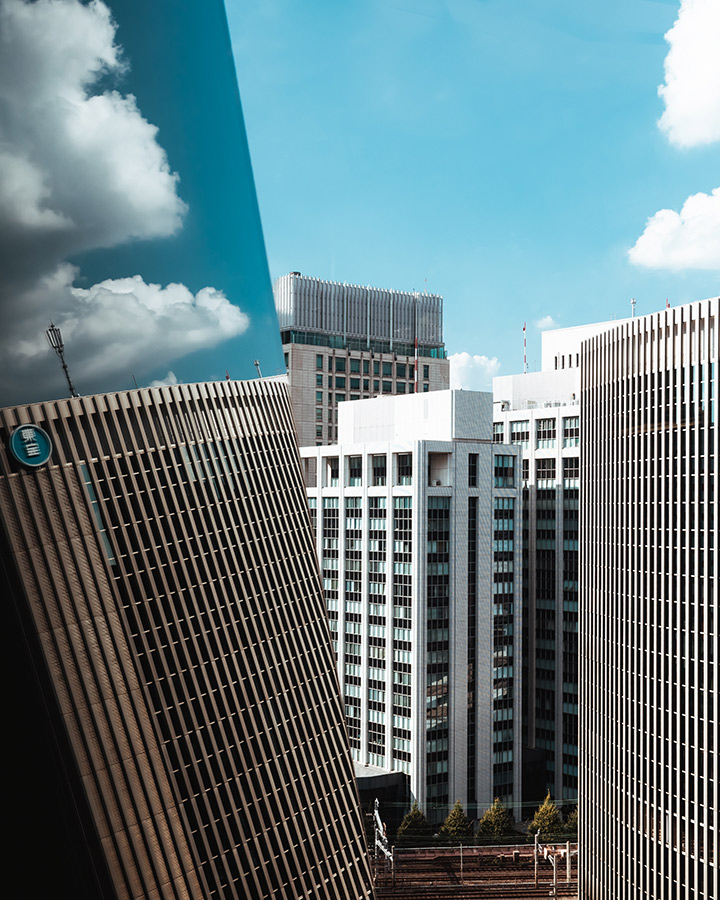 「ガラスに反射したビルの重厚感と、空に浮かぶふわふわとした雲では、質感が逆ですが、どちらもそれぞれの良さが写し出されていました。レンズはRF24mm F1.8 MACRO IS STMを使用。少し絞って撮影したのですが、ディテールが美しく全体的に引き締まった印象に仕上げることができ、満足しています」。
