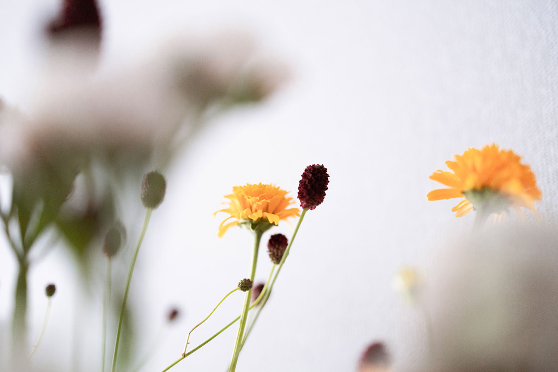 RF35mm F1.8 MACRO IS STMを使って、寄れるギリギリまで寄ってみました。花の束の中にレンズの頭を突っ込んでいくような感覚で近づき、周囲のお花をボケさせてフレームのように。F値は開放F1.8。開放だとピント合わせがシビアになってくるので、AF方式はスポット1点AFで撮っています。