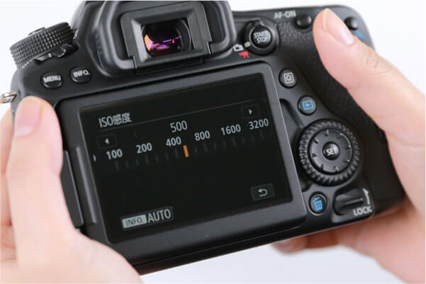 ISOをオートにすると、室内・室外の明るさによって、ISOが適切な設定に自動調整されます。それに合わせてシャッタースピードも変わるので初心者にはとても便利です。しかし、ISO感度が高くなりすぎると、写真の仕上がりが粗くなってしまうこともあります。そこで、ISOをマニュアルで設定する際には、シャッタースピードが1/1000ぐらいになるようにISOを設定してみてから、徐々に上げていくという手順で調整するといいでしょう。屋内で撮影される場合は、"1/(レンズのミリ数)"程度が目安です。