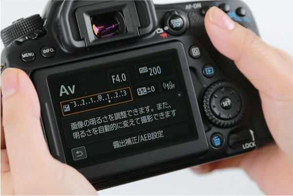 また、何も設定をせずそのままシャッターを切ってしまうと、露出が明るい背景の影響を受けて、ペットの顔が暗く写ってしまう場合があります。きれいに撮るには、ペットの顔が明るく写るところまでを目安にプラス側に露出補正を行います。