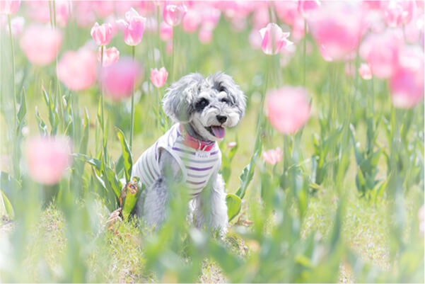 ペットのポートレート撮影の基本は「逆光」による撮影です。毛の質感も柔らかに表現できて表情も豊かに出るので、チワワやトイプードルのような毛並みのふわふわした小型犬を可愛らしく撮影する際にはおすすめです。背景がしっかりボケて、光がキラキラした写真になるので、寄って撮影をする時には逆光を意識するといいでしょう。