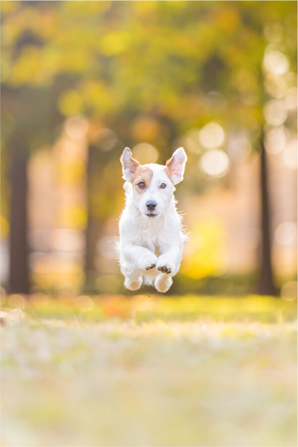 あまり激しく動いていない状態を想定して説明してきましたが、元気に動き回るペットを撮影したいという方もいると思います。そんな中・上級者は「ジャンピングドッグ」を撮影してみてはいかがでしょうか。 ここでは広角レンズと望遠レンズを使った場合における、それぞれのポイントを解説していきます。