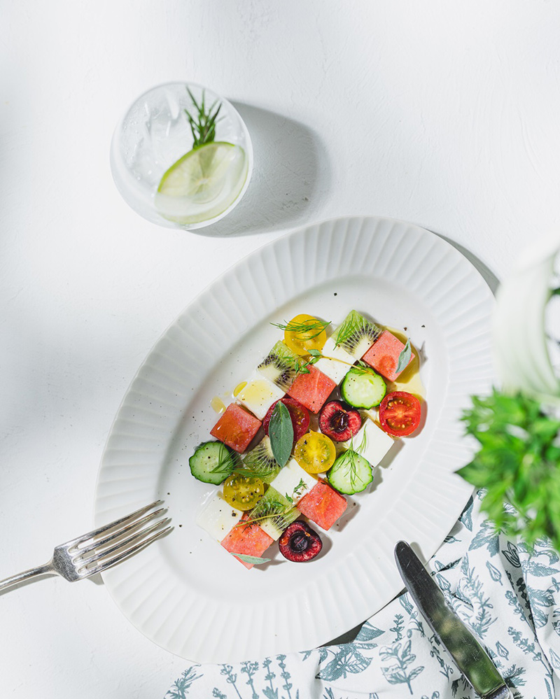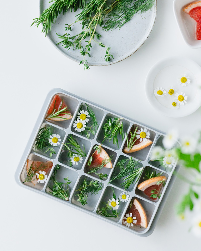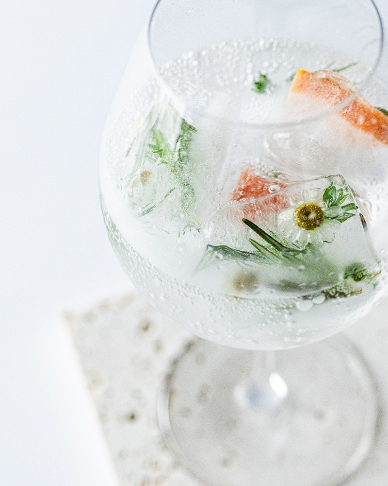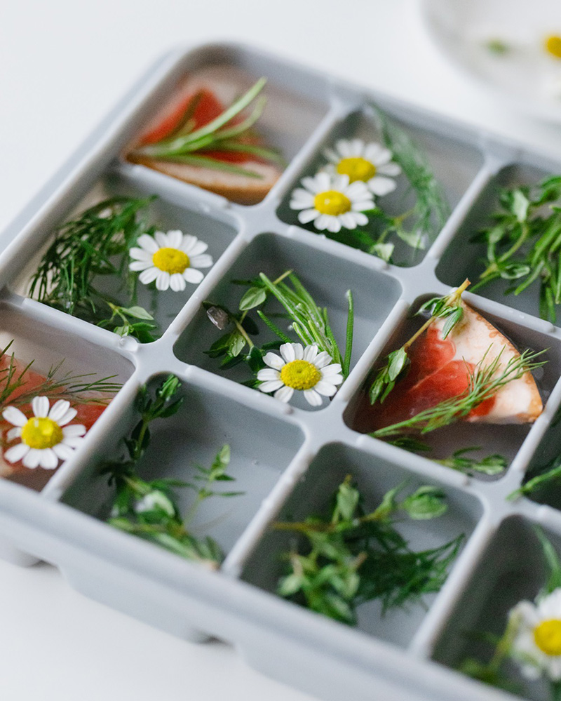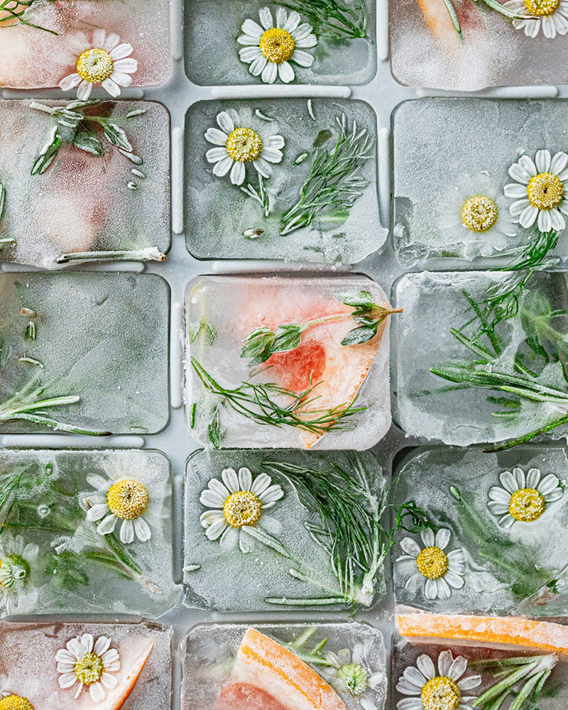 "霜のついた氷や閉じ込められたハーブ、エディブルフラワーの質感や色味も、繊細かつ立体的に描写してくれます。