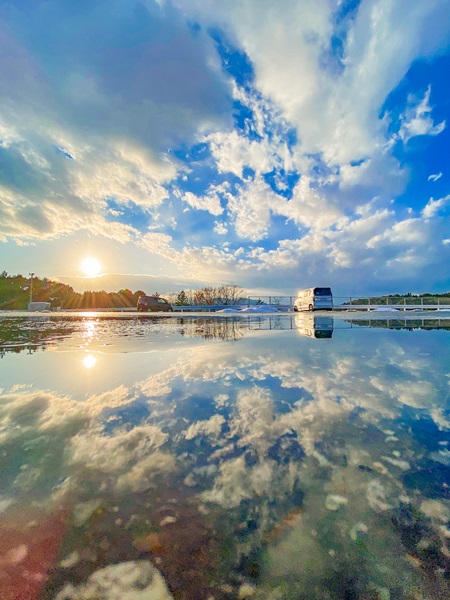 今回は、僕がアニメチックな写真を撮るようになったきっかけと「写真をアニメチックにするとはどういうことなのか」についてお話しできればと思います。この水溜まりの写真は、僕の人生を変えてくれたと言っても過言ではない奇跡の1枚です。こういった水溜まりのような日常の景色をアニメチックに表現する写真を普段撮影しています。