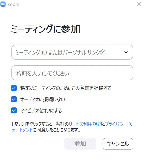 入力したら「参加」をクリックします。-