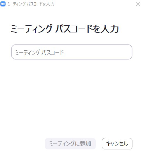 ミーティングパスワード(招待メールにあるパスコード)を入力して、「ミーティングに参加」をクリックします。
