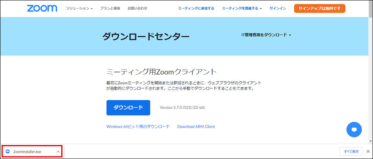 事前準備として、まずはパソコンにZoom専用のアプリケーションをインストールしてください。