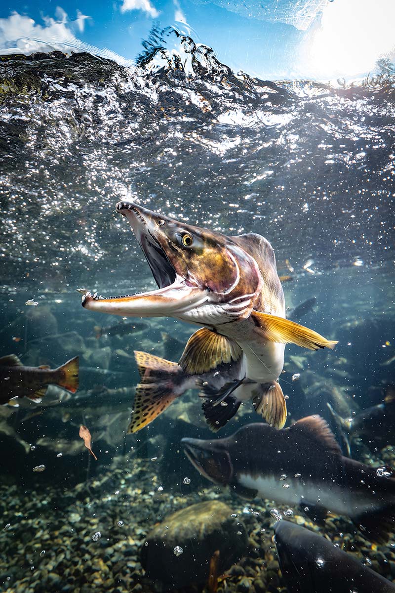 個人的に魚の躍動感が伝わる写真の構図というか、魚のうねりを正面に捉えた構図がすごく好きなんです。見事にそれがおさえられたこともありますが、なおかつ口を開いていて、水の流れと泡感、光の差し方もあってすごく神々しい雰囲気が捉えられていて。本当にお気に入りです。