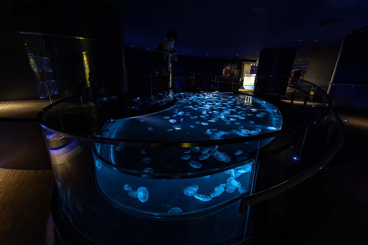 ミズクラゲの飼育は特に水流のバランスが難しいのですが、それさえクリアできれば割とどんな形の水槽でも展示できるそうなので、水族館ごとに個性が出やすいんです。