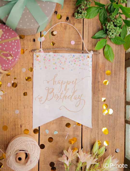 お気に入りのカリグラフィーでパーティーのデコレーションをつくってみましょう。「ひと手間」であなたらしさを取り入れて。