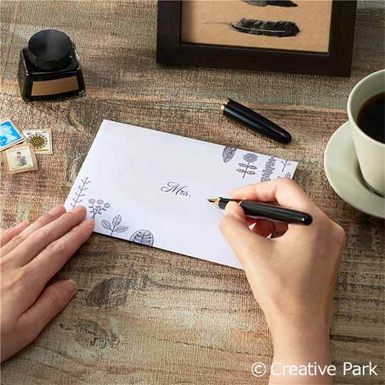 手紙の封筒の宛名にも、自分らしいカリグラフィーを取り入れてみてはいかがでしょうか。シンプルな封筒はいろいろな工夫ができそうです。