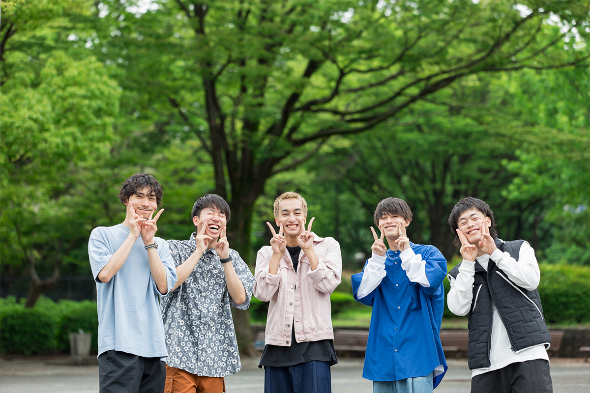 全員で踊っているときがとにかく楽しい! それが僕たち5人のダンスチームHoodie famです。僕たちの日々をたとえるなら「小学生男子の放課後」。授業が終わると同時に、魔法の合言葉「ランドセル置いたら今日も公園に集合な!」を唱えて、また集まって遊ぶ、みたいなあの感じです(笑)。