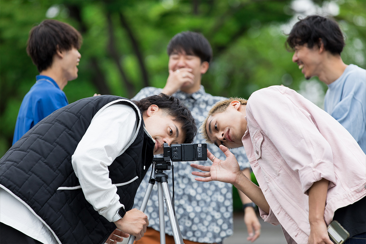 とにかく笑う、じゃれる、そしてまた笑う。ダンスクリエイター“Hoodie fam”のメンバーが揃えば、現場の空気はチャーミング&ピースな空気に早変わり。「とにかくみんなで踊るのが楽しい!」と屈託なく話す彼らの活動は、TikTokのみならず、実は、世界大会での名だたる受賞歴があるなど確かな実力を兼ね備えるプロフェッショナルエンターテイナー。そんな彼らにVlogカメラ「PowerShot V10」でオリジナル動画を作っていただき、併せて、ダンスとダンサーの未来について思いの丈を、照れながらも存分に語っていただきました。