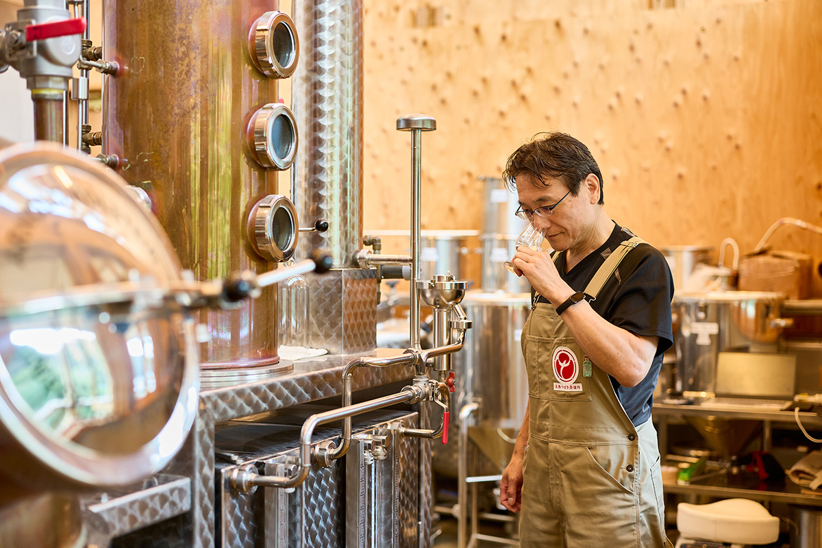 この地で湧き出る天然水を使い、島内で採取される椿の種子のほか17種類ものボタニカル(ジンのフレーバー付けに使うハーブやスパイスのこと)の一つ一つを吟味し、個性的なアロマをまとめあげてGOTOGINというハーモニーを生み出す魔術師。