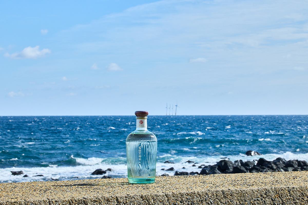 福江島の沖合約5km、水平線に浮かんでいるように見えるはえんかぜ。GOTOGINの美しいボトルの向こうに、五島の未来をつくる風景が見えるでしょうか?