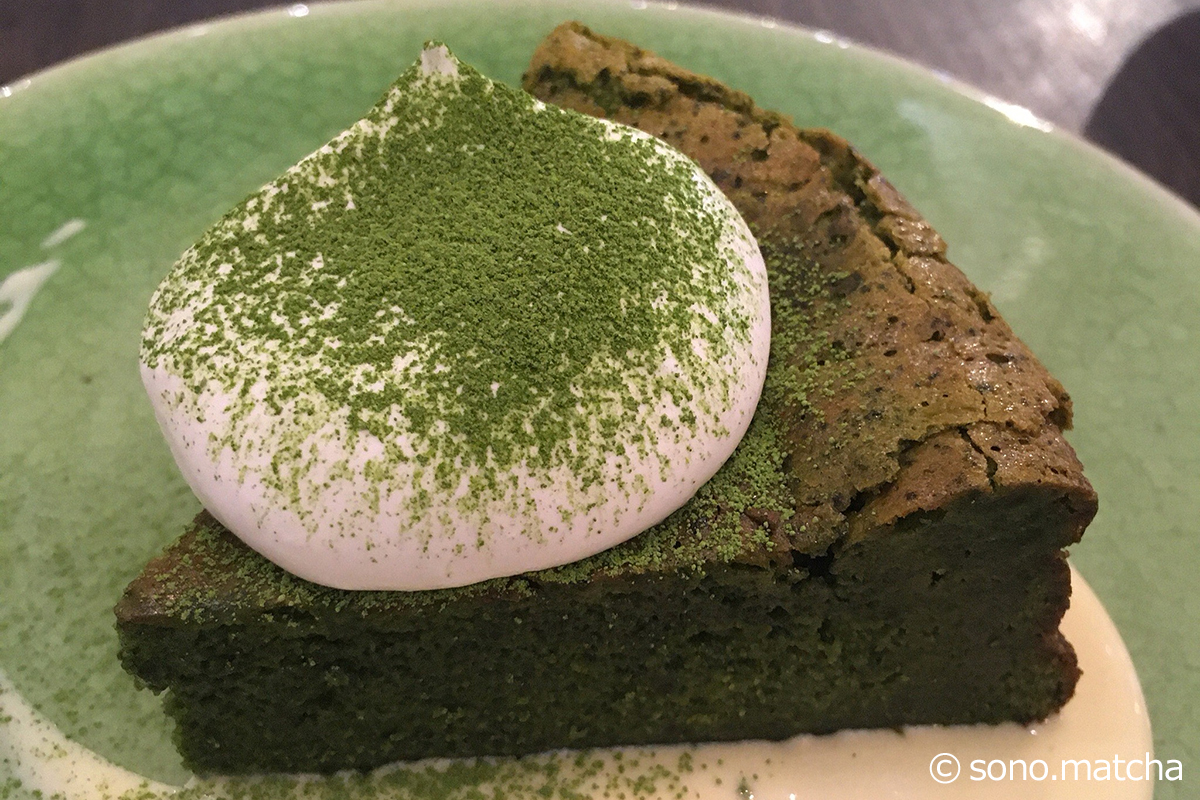 抹茶の生クリームも、抹茶がたくさんはいると粒々感が残るので、それもいいですね。生クリームの上に追い抹茶をした結果、抹茶が水分を吸い、ダマとまではいかなくてもバニラビーンズみたいな状態で入り混じってるやつがたまにあるんですよ。それに、抹茶テリーヌのなんともいえないねっとりとした独特の断面図……。よく近寄って、マクロレンズで切り取れたら面白いだろうなあ。