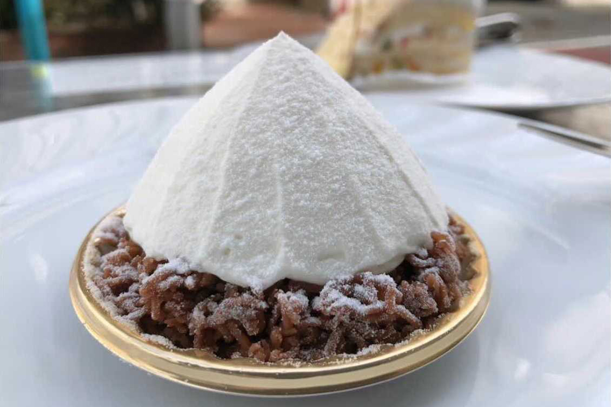 たとえば、池尻大橋(東京都)にある「L'atelier MOTOZO(アトリエ・モトゾー)」は、モンブラン=フランスのイメージを一新する、イタリア風のモンブラン「モンテビアンコ」をいただけるお店です。白い雪の積もった山頂をイメージし、マロンクリームの上に生クリームがどん!と乗った形は、いわゆるモンブランの固定概念を覆してくれる、かつ美味しい逸品。
