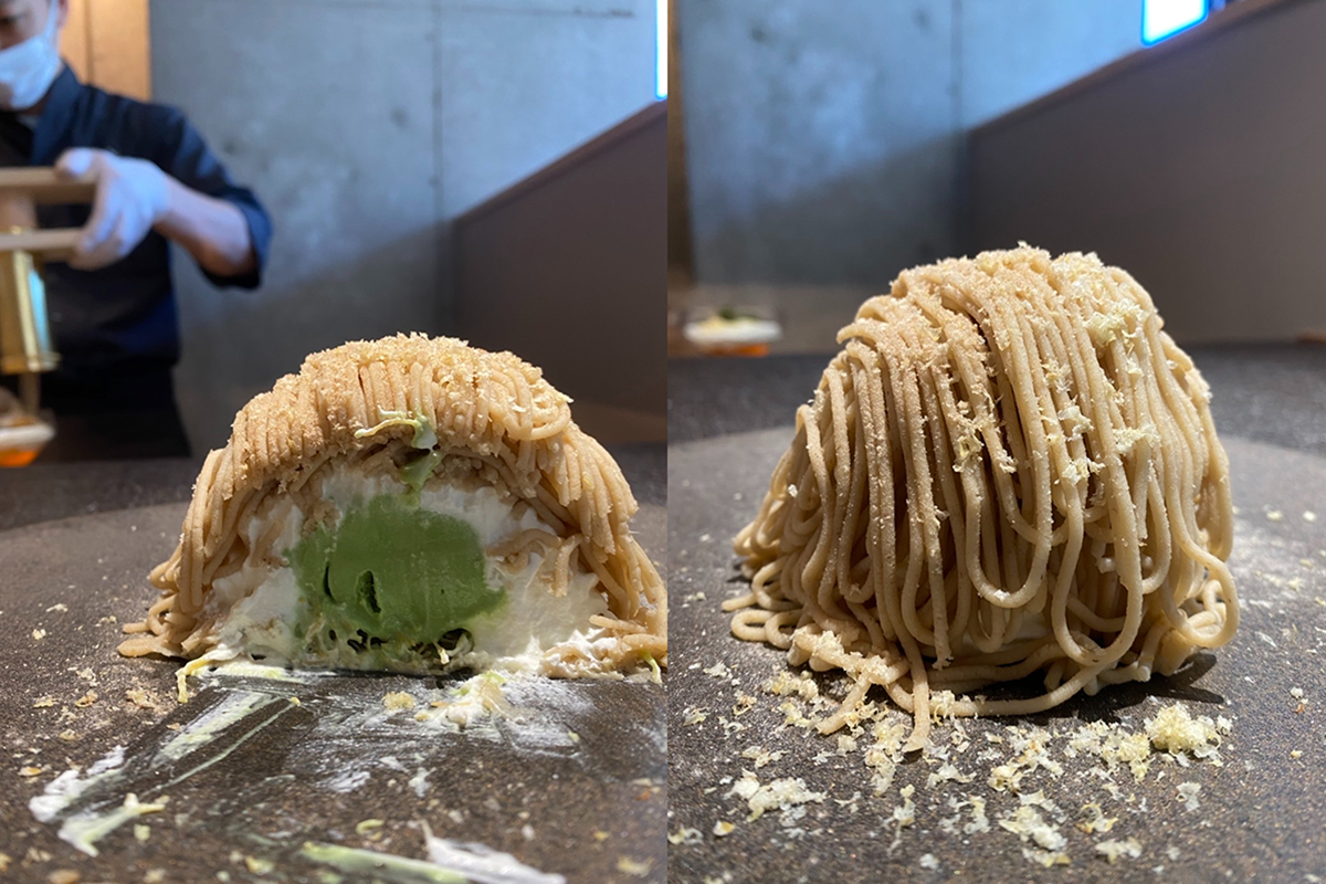 ほかにもマロンペーストをあえて太めに、口当たりがしっかり感じられるようにアレンジされていたり、飴細工のように細かくされるところもあったり。食べる前にこの形は、どういう風な味わいになるんだろう?と観察しながら口にするのは楽しいと思いますよ。