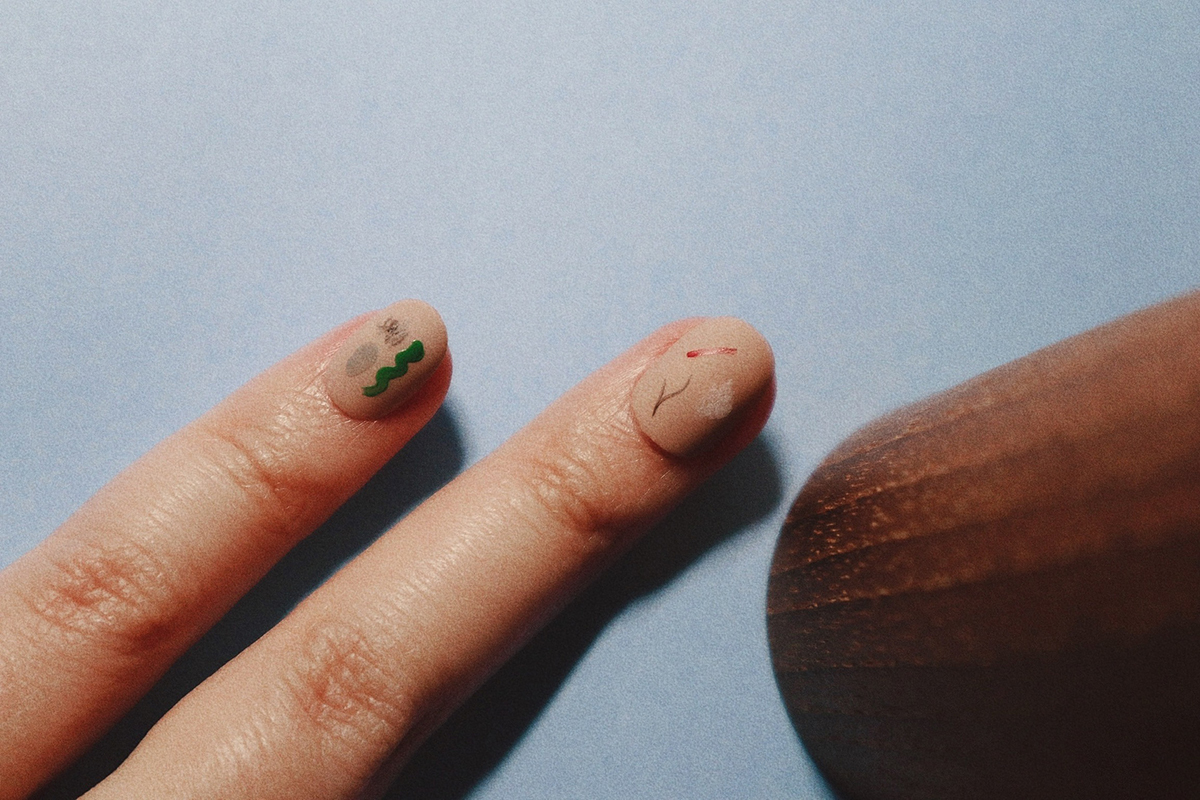 「つめをぬるひと」の活動は、自宅に数本あったネイルを塗ったことからはじまりました。それがなんだかとても楽しくて。イラストが得意なわけではないので凝ったものは描けませんが、丸や線などシンプルなかたちを組み合わせただけのネイルがもっとあったらいいのに、と思っていました。爪は体の部位の中で唯一手軽に書き換えができて、日常的に目視できる部位でもあります。その部位が自分の好きな色になっていて、ふとした瞬間に視界に入ってくる。それがいいですよね。