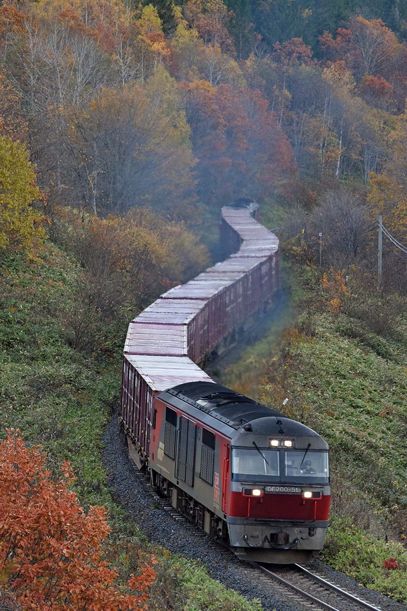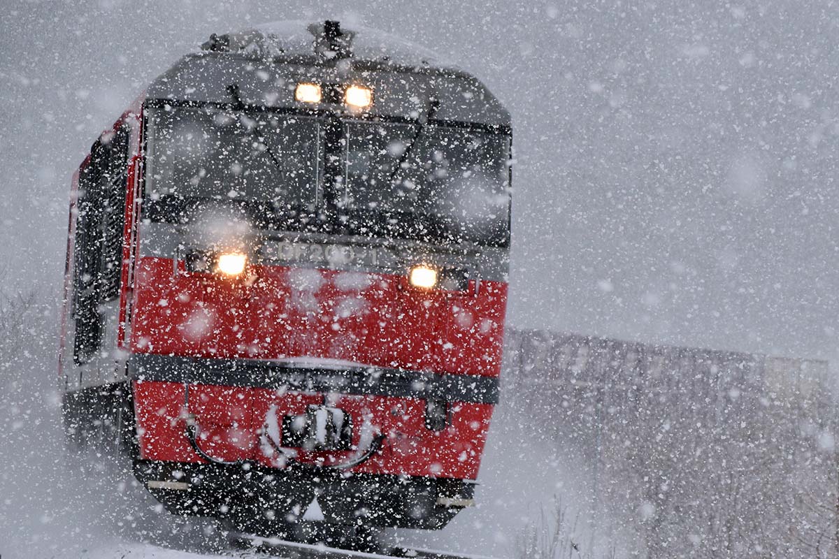 すごく細かいことですが、鉄道車両の先頭車の多くには排障装置という、線路上の障害物をはねのけて、車体下に巻き込まないための部位があるんですよ。足回りを隠すのでスカートとも呼ばれます。で、この時撮ったDF200という形式の機関車の初期ナンバーは、その部分が赤いんです。その部分が白い雪がばーっと舞う中に赤色で映える。それはもう「くう~~~」って(笑)。