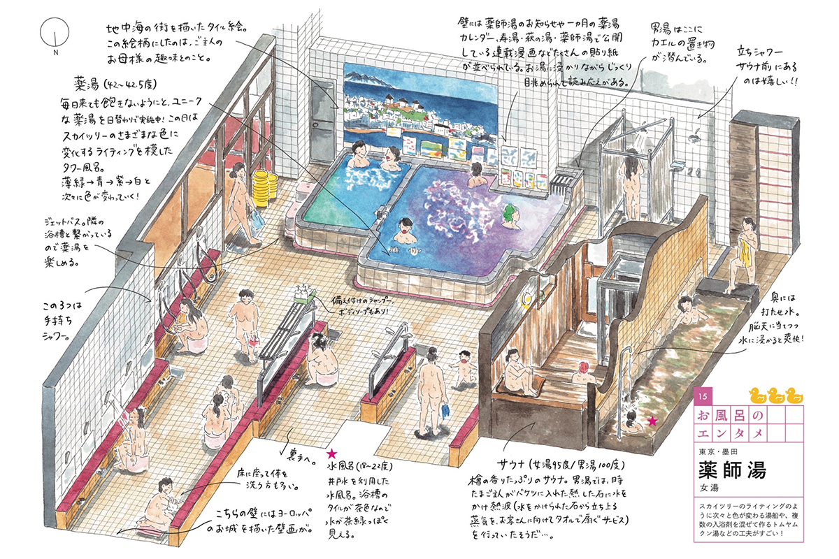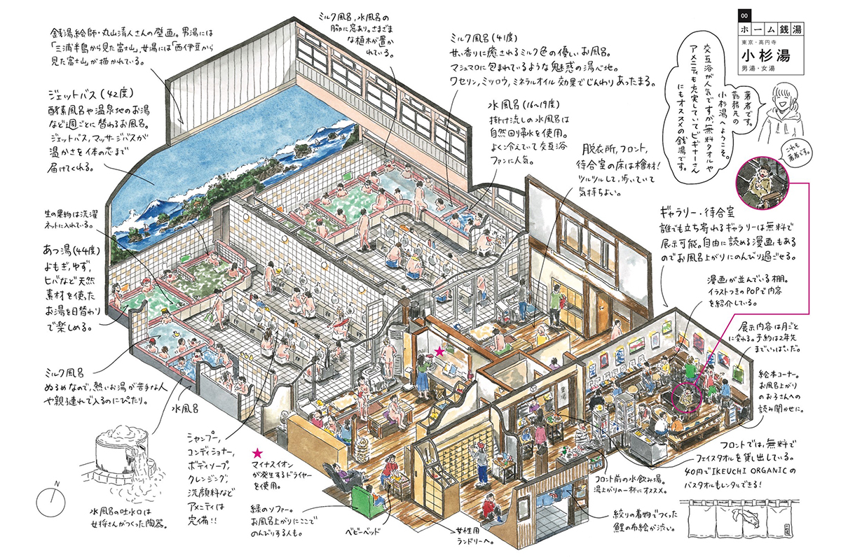 銭湯に癒し救われた日々。銭湯図解イラストで湯の個性を描き出す。