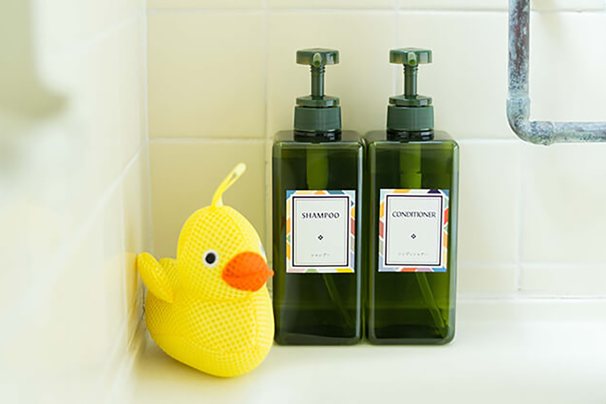 銭湯では自分のシャンプーなどを持ち込むことも多いですよね。シンプルなラベルをつけて他のお客さんのものと区別をつけるようにしてみましょう。