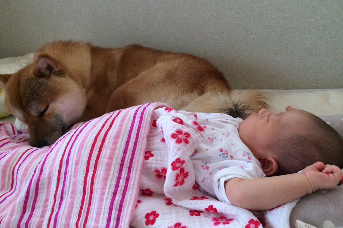 それにしても銀次郎は全然吠えないし(もともと穏やかで滅多に吠えないのですが)、余裕があるときに試しに距離を取るのをやめてみようと。そしたら銀次郎が娘に近寄って、添い寝してくれて。「あっ、これはいけるな」と感じたんです。そのうちに娘が泣けば様子を見にいったり、銀次郎のケージ(テリトリー)に娘が入っても全然怒らなかったりで、なにをすることもなく案外スムーズにみんなで一緒にすくすく育ちました。