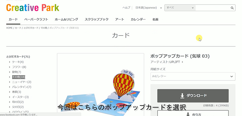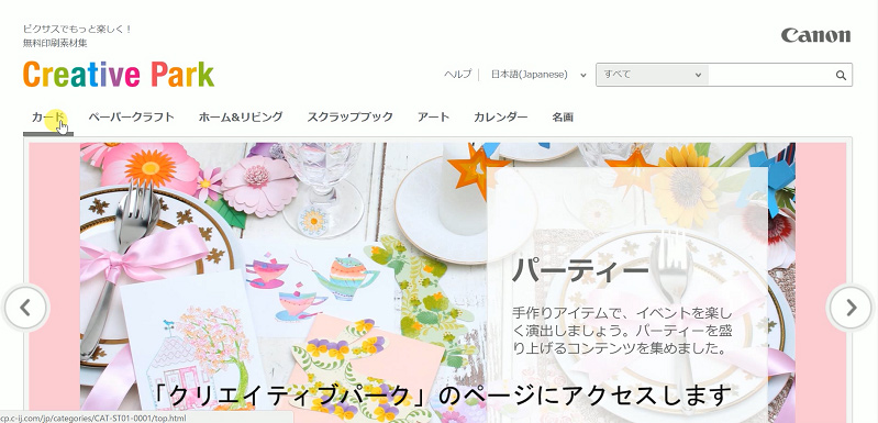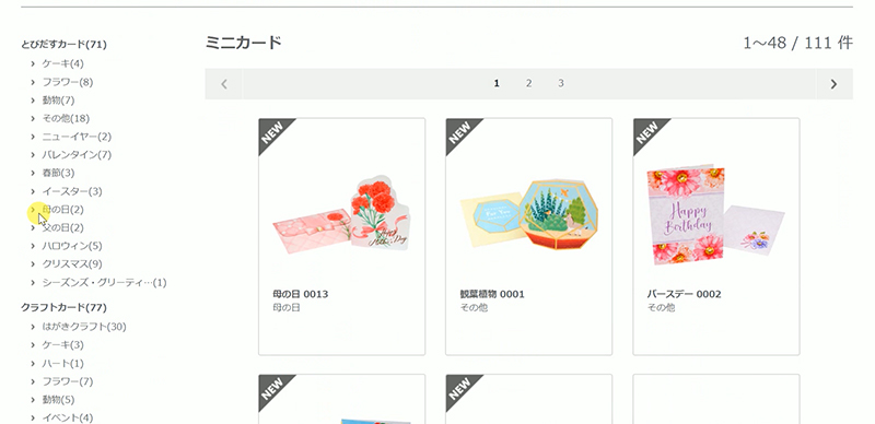 「カード」「ペーパークラフト」などのカテゴリがあるので、見たいカテゴリを選択してクリックします。