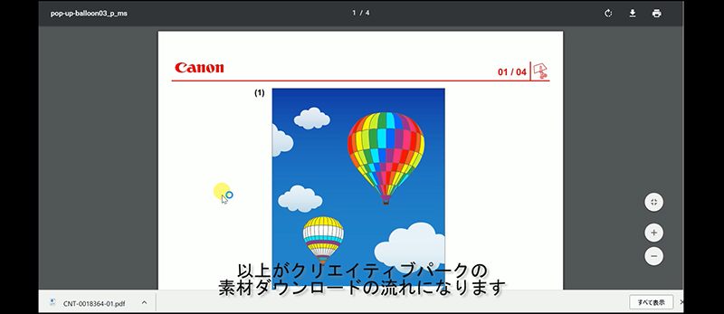 以上がクリエイティブパークの素材「ダウンロード~印刷」の流れです。