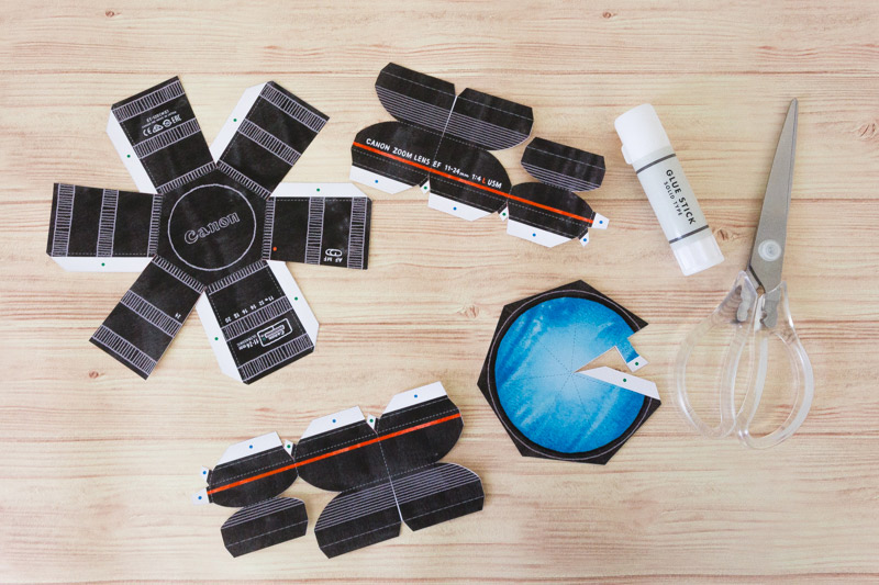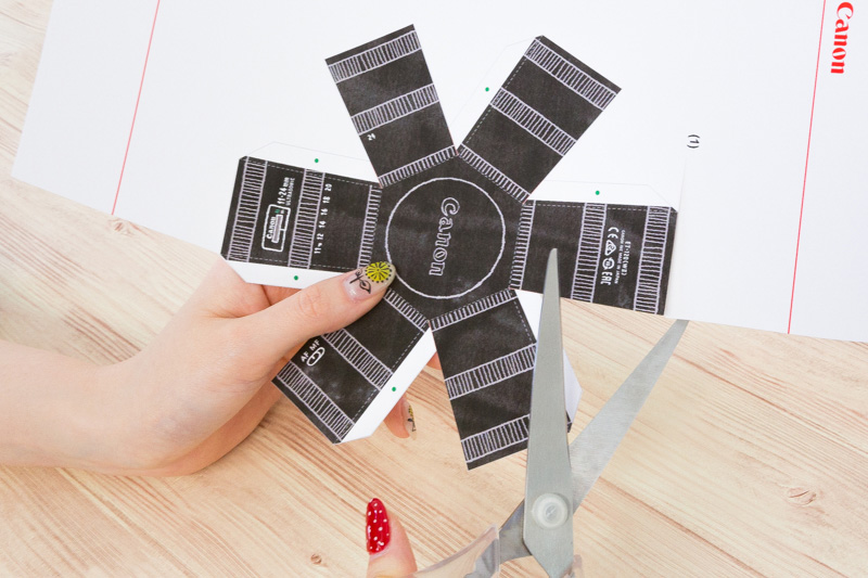 糊付けすると、可愛いキヤノンのレンズが完成!カメラファンの方にもおすすめの素材です。