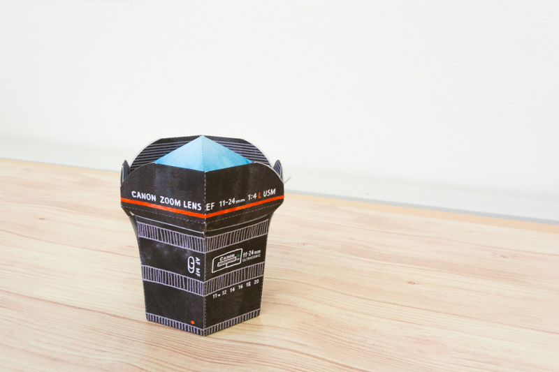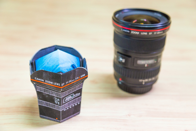主人のキヤノンレンズと並べてみました。小さくて可愛いペーパークラフトレンズですよね。
