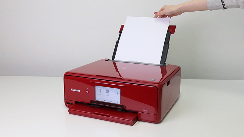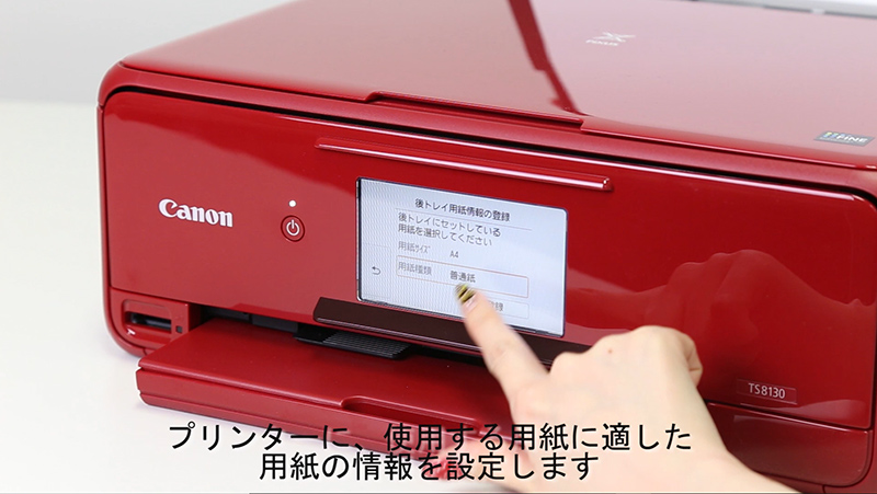 用紙をセットすると、プリンター側に用紙を設定する画面が表示されます。
