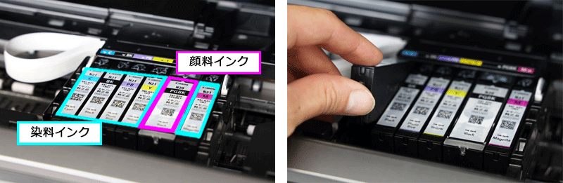 PIXUS XK500は、無くなった色だけ交換できる「独立インクタンク」を搭載しているので、無くなった色ごと交換が可能です。