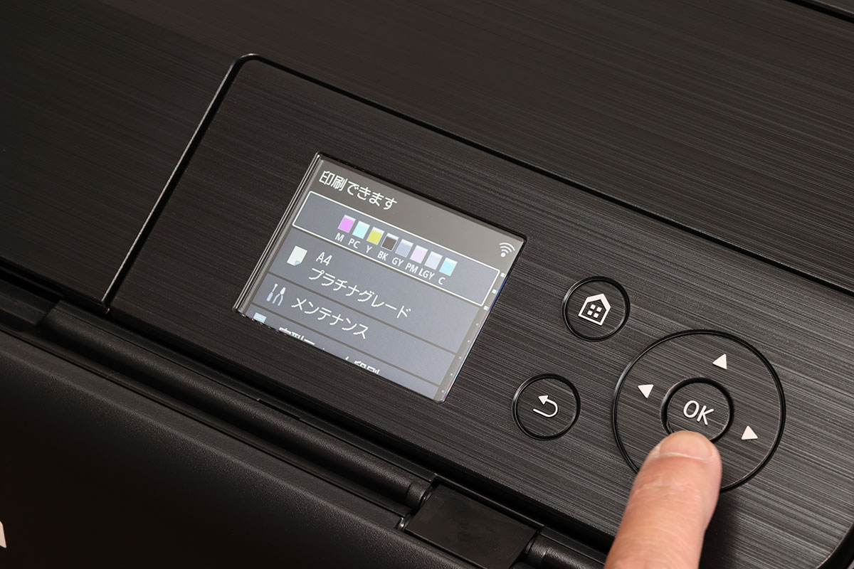 3.0型液晶パネルの採用により、インク残量やメンテナンス情報などのプリンター状態をひと目で確認ができるようになりました。利便性が大きく向上したほか、液晶パネルに充実した操作ガイドやエラー時にオンラインマニュアルにつながるQRコードを表示できるなど、扱いやすさも増しています。