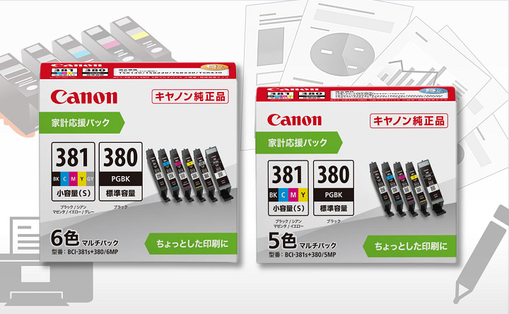 ちょっとした印刷にちょうどいいマルチパック「家計応援パック」をご紹介!文書印刷が多くてカラーインクをあまり使わない方に向けて、BCI-381/380シリーズの「家計応援パック」が登場しました。