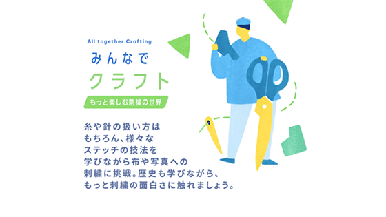 みんなでクラフト糸や針の扱い方はもちろん、様々なステッチの技法を学びながら布や写真への刺繍に挑戦。歴史も学びながら、もっと刺繍の面白さに触れましょう。