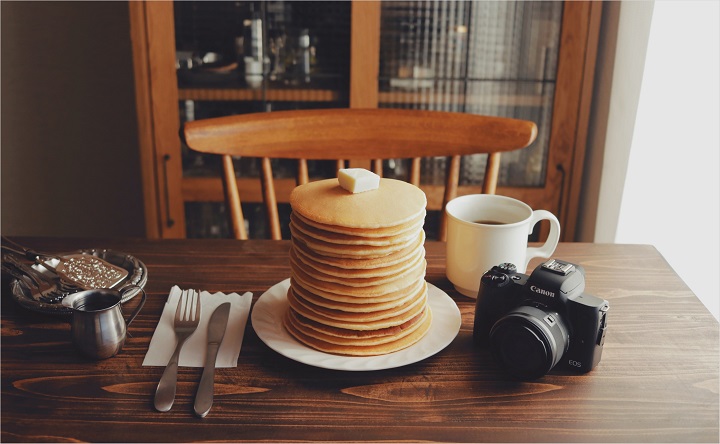「EOS R8を使ってみて、まず感じた魅力がその“軽さ”です。普段テーブルフォトを撮影するときは、いろいろなシーンを見つけるためにテーブルの周りを動き回って、手を伸ばしていい構図を探すことが多いのですが、EOS R8くらい小型で軽いと、撮影の可動域が広がり撮影がはかどります。また、動画と写真の切り替えが感覚的にできるようボタン配置が施されているなど、インターフェイスがよく考えられていて、操作がしやすいと感じました。とりまわしやすさと、操作性のよさ、この2点は、カメラの扱いにおいてベースとなる部分。可動域が広がることは、それだけ撮影の幅が広がり、シャッターチャンスが増えることでもあります。チャンスが増えれば、いろいろな表情を撮ることができ、それらを比較して検証することもできるので、撮影の腕もあがり成長ができると感じました。EOS R8、自分の中での『これ好きだな』という写真と出会える確率が高くなるカメラです。