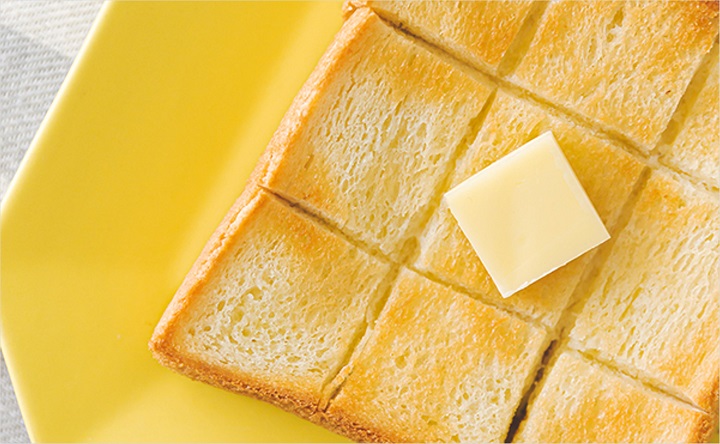 この写真は、少しずつ垂れていくはちみつの粘度とツヤ感をシズル感として表現したくて、それが際立つよう、サイドから光を当てて撮影。懐かしいホットケーキを想起させながら、一番見せたいはちみつの部分にピントを合わせ、視線を誘導するよう工夫しています。また奥にバターとはちみつのパッケージをかなりぼかして写し込むことで、シンプルながらも立体感が出るようにしました。