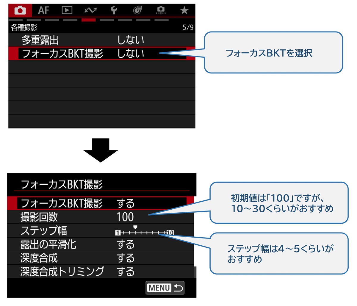 カメラ内深度合成のおすすめの設定(EOS R6 Mark IIの場合)