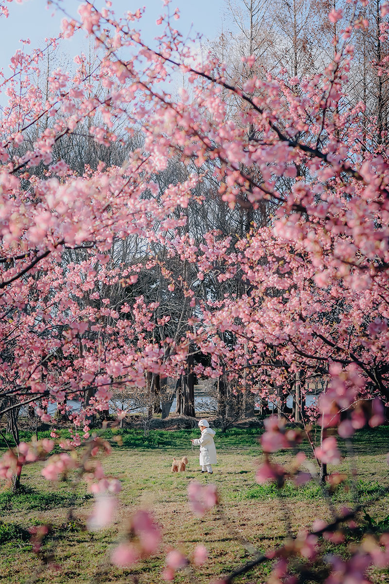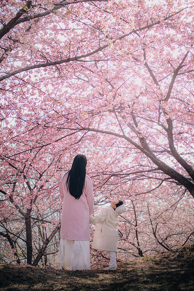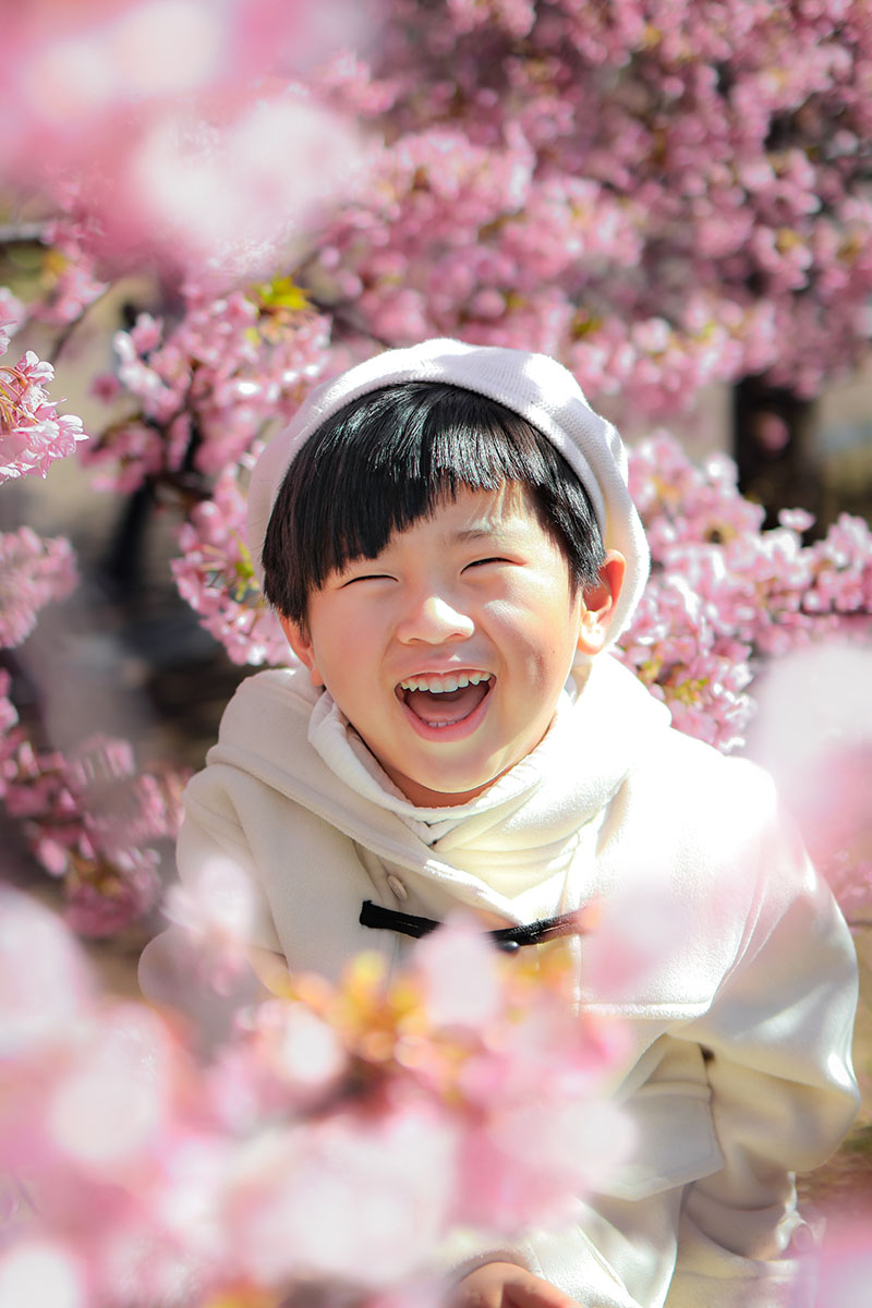 桜の前ボケを入れながら、花に囲まれているような構図で撮影。子どもがカメラを意識しないように、10秒セルフタイマーを押したあと、普通におしゃべりしながら、頭の中ではこっそりカウントしつつ、撮りました。この写真は前ボケをしっかり出したかったのと、近距離でリモート撮影したかったので、レンズはRF35mm F1.8 MACRO IS STMを使用。