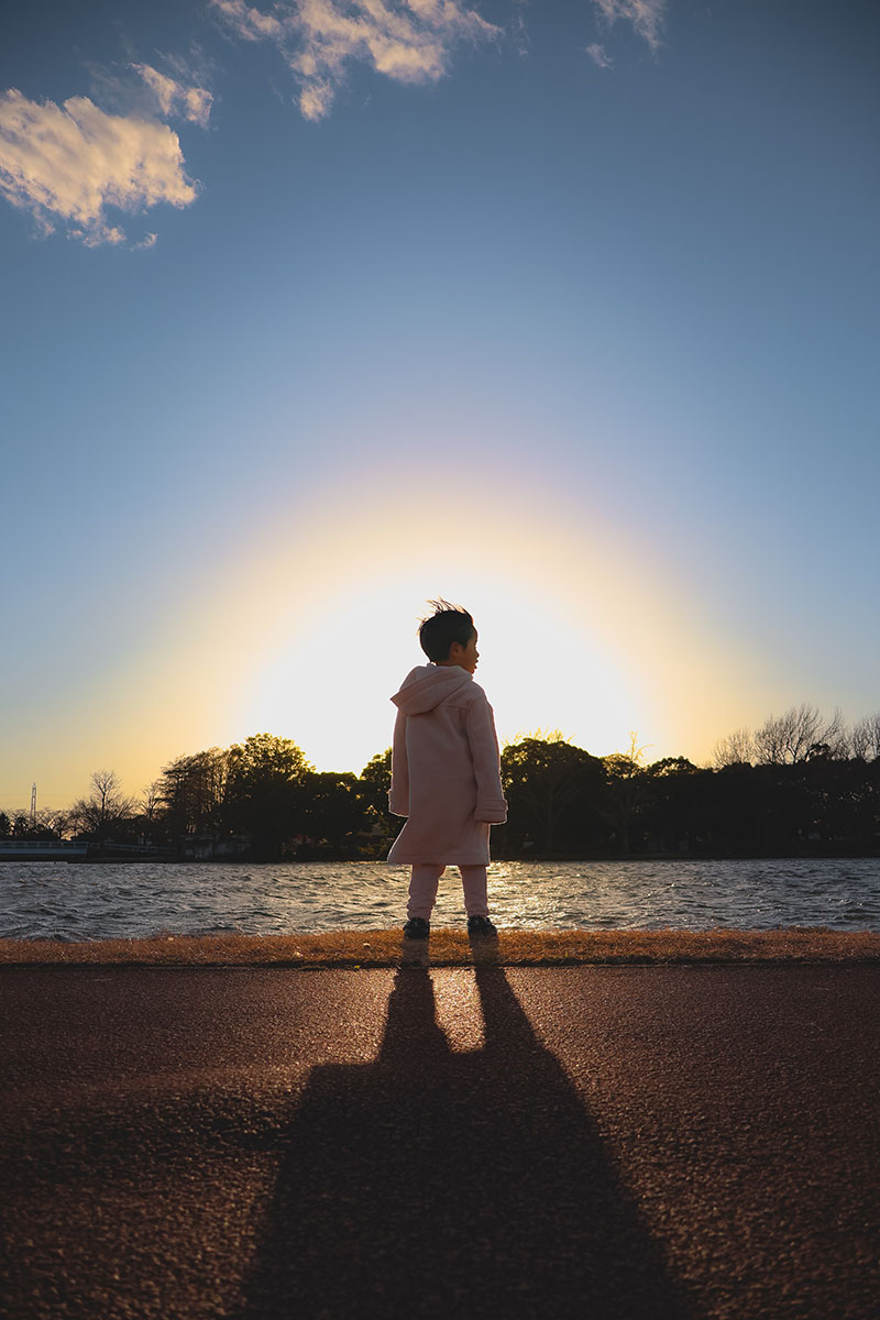 光の強いときや広角で景色と一緒に子どもを捉えたいというシーンにおすすめです。子どもと一緒に見て感動した景色や、一緒にお出かけした場所の思い出など、あとで撮っておいて良かったなと思うようなシーンこそ、情報量の多い広角で是非とも残してほしいと思います。