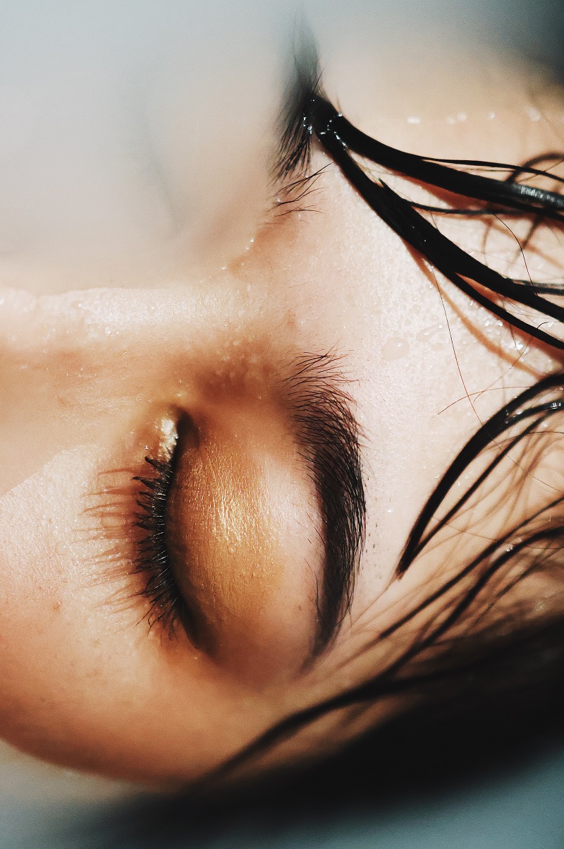 撮影は、顔や身体の沈み具合を調整しながら行います。その際、水中と水面の境にフォーカスして撮影すると、人物が液体に溶け込むような不思議な写真を撮ることができます。身体まで写すのか、顔のみか、浴槽の縁は入れるのか入れないのかなど、細部まで追い込みながら、さまざまに撮影してみましょう。