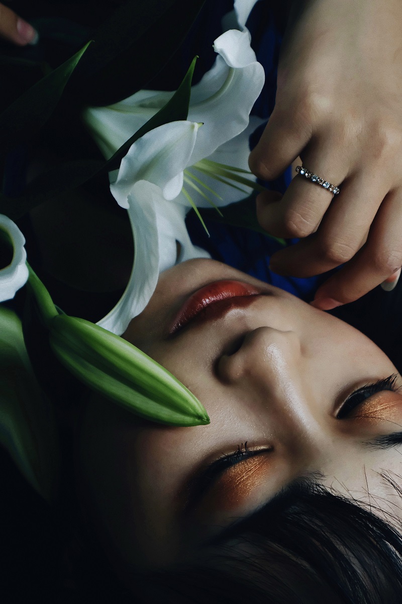ちなみに水が透明だと、水に浸かっている部分がゆがみ、写真に表現されます。あえてゆがませた写真も面白く、またモデルにレース系の衣装を着てもらったり、水中にレースの布などを入れたりすると、それらが水中をゆらめく様子も写った美しいポートレート写真を撮ることができます。花などの小物はアクセントや雰囲気をプラスするのにおすすめです。