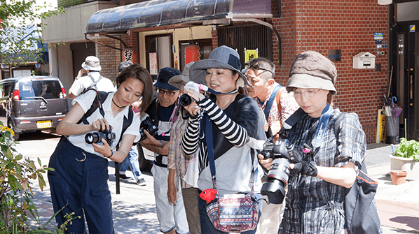 風景やスナップ、人物など、旅の途中で出会う素敵な光景をみんなでスナップ。歩きながら被写体を見つけるコツを教われます。