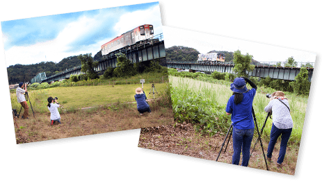 知る人ぞ知るローカル線を訪ねてベストショットを狙う部員たち。沿線の撮影スポットで先生からレクチャーを受け、列車の時間を待ってシュート。味のあるローカル線の撮影を、思う存分楽しみました。