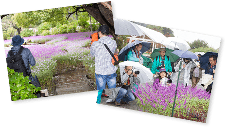当日はあいにくの雨でしたが、雨に濡れた質感や水滴に映る小さな世界など、先生がその場で撮った写真を見せながら雨ならではの花の魅力をレクチャー。新しい花の表情に出会うことができました
