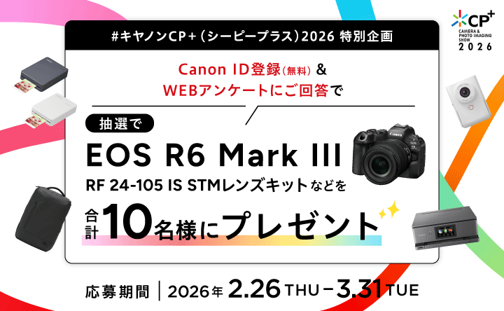 CP+(シーピープラス)2026に関連して開催するキヤノンのさまざまなキャンペーンをご紹介します。