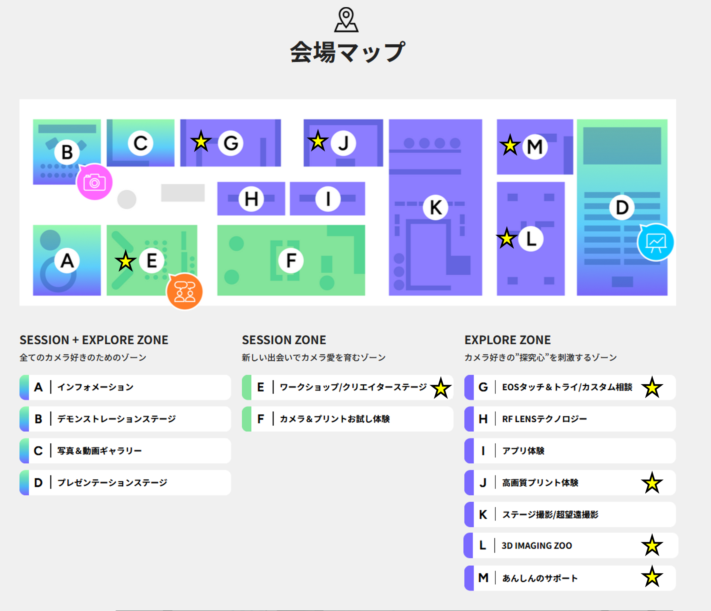 - 整理券システムにアクセスするための二次元バーコードは、EOSタッチ&トライ/カスタム相談エリア前に掲示しています。