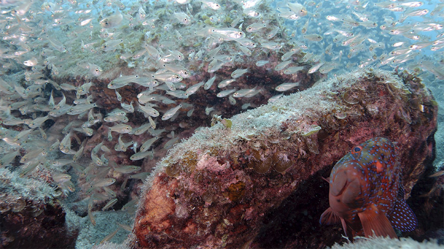 「JAPAN'S SEA 8K version」では世界的にも稀有な海中環境を誇る日本の海を題材に、伊豆半島、伊豆大島、紀伊半島、沖縄久米島で撮影した映像です。繊細な海藻や魚たちの造形、鮮やかな色彩とダイナミックな生命の躍動などを感じて頂ける映像となっております。